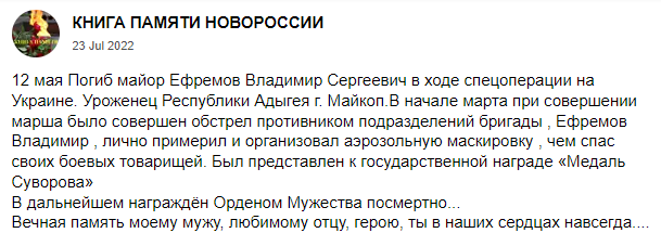 Awards: Order of Courage (ph.), Nominated for "Suvorov Medal", judging by the lack of updates it was not awarded.