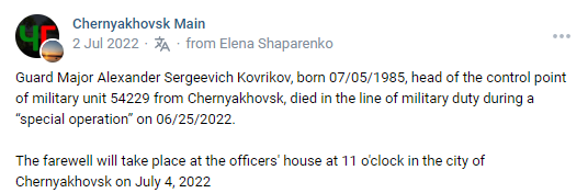 Unit: Iskander-2 Battery, 152nd Guard Missile Brigade, 11th Army Corps, Baltic Fleet