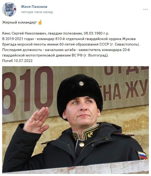 In 2017 Sergei Kens became one of the figurants of the OSINT investigation InformNapalm (https://informnapalm.org/ua/zhyvi-mertvi-17-yi-omsbr-zs-rf-infografika/). At that time he was also the commander of the 70th Motorized Regiment of the 42nd Motorized Division of the 58th Army of the Eastern Front.