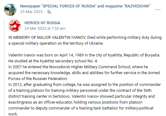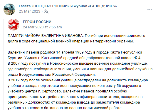 On May 11, 2022, Valentin Ivanov died heroically while performing combat missions.