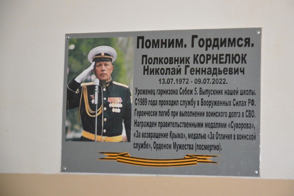 The opening of a memorial plaque to a former student, guard Colonel Nikolai Gennadievich Kornelyuk took place on April 25, 2023 at Sosnovoborsk Secondary School.