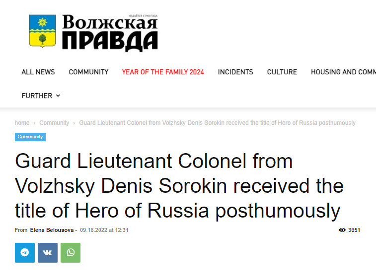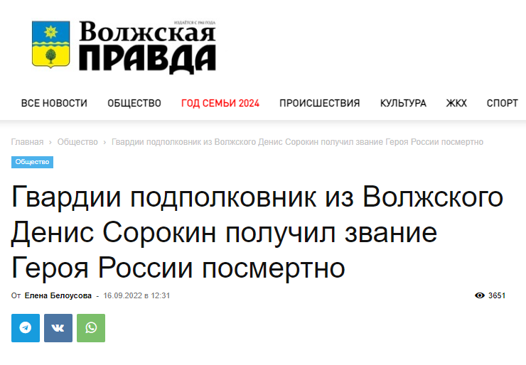 On the Day of the Russian Airborne Forces in the city of Volzhsky (Volgograd region), the memory of the Hero of Russia, Lieutenant Colonel of the Airborne Forces Denis Mikhailovich Sorokin, who died during a special military operation, was immortalized.