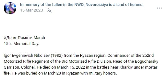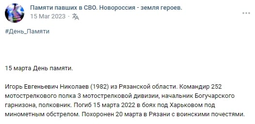 Place of Death: near Izyum, Kharkiv Oblast (via Mortar Fire)