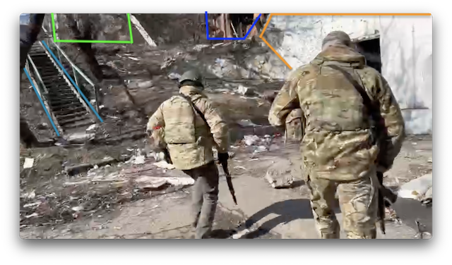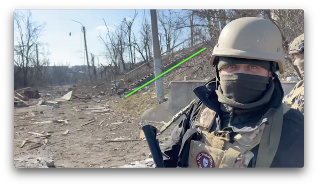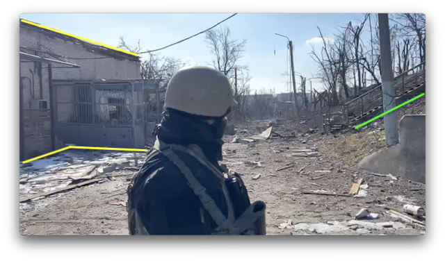 That location is near the outskirts of Bakhmut, so it seemed worth looking into further. Examining the video closely we identified some fairly unique features of the location: