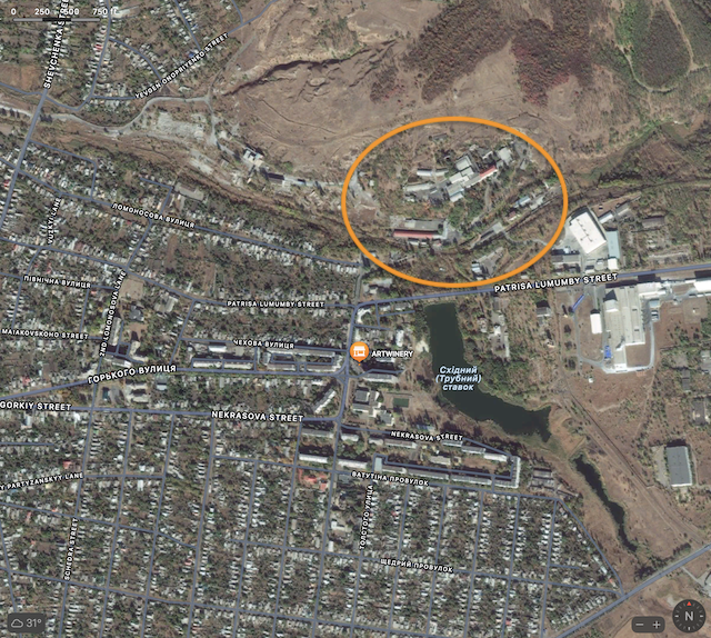 He made the mistake, however, of letting a few pieces of information slip that allowed us to relatively easily pinpoint the location of this Wagner base. The first piece of information is that he states they are about 400 meters from Bakhmut. This let's us know we need to be looking at the outskirts of the city.