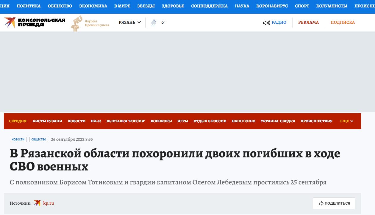 Place of Death: Izium, Kharkiv Oblast, Ukraine (HIMARS Strike on the Command Post of the 35th CAA)