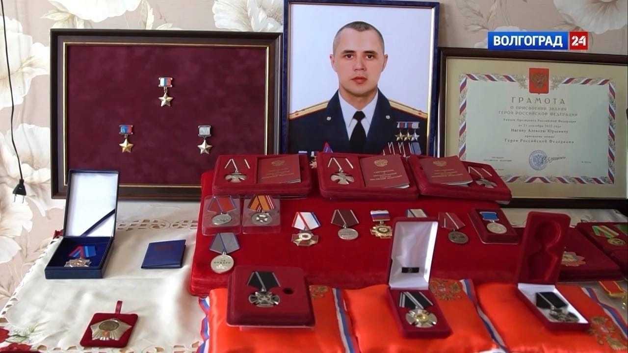 Alexey Nagin died heroically on September 20, 2022. Relatives and colleagues noted Alexey’s incredible fortitude and courage in any situation. He inspired heroism and never backed down. The monument depicts Alexey's numerous awards, including Hero of the Russian Federation - the highest title awarded for services to the state and people associated with the accomplishment of a heroic feat.