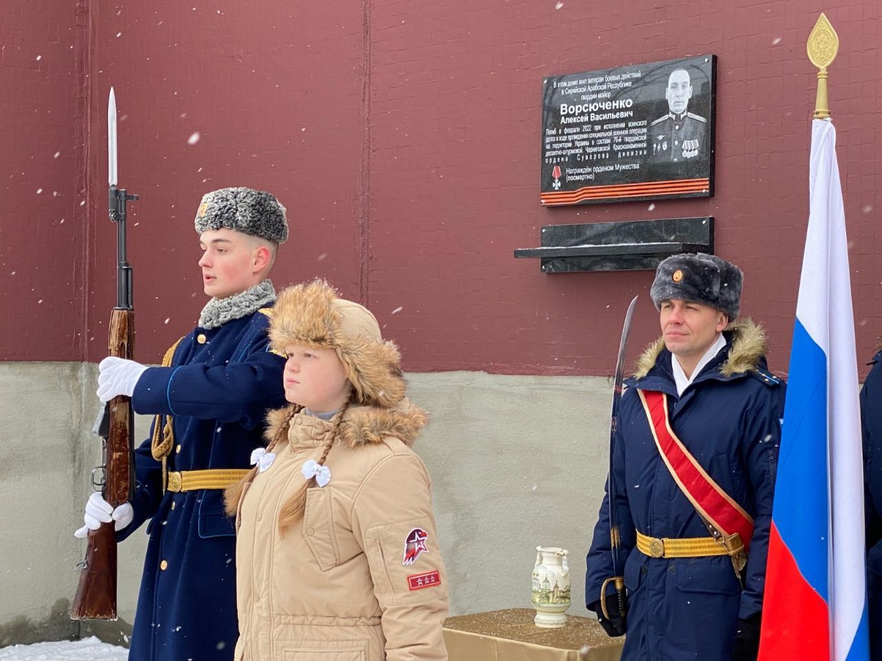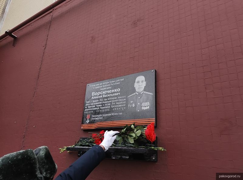 On Monday, February 20, a ceremonial opening of a memorial plaque in honor of Guard Major Alexei Vorsyuchenko, who died during a special military operation (SVO) in Ukraine, took place in Pskov. The event was attended by relatives and friends of the deceased, military personnel, representatives of city authorities, and city residents.