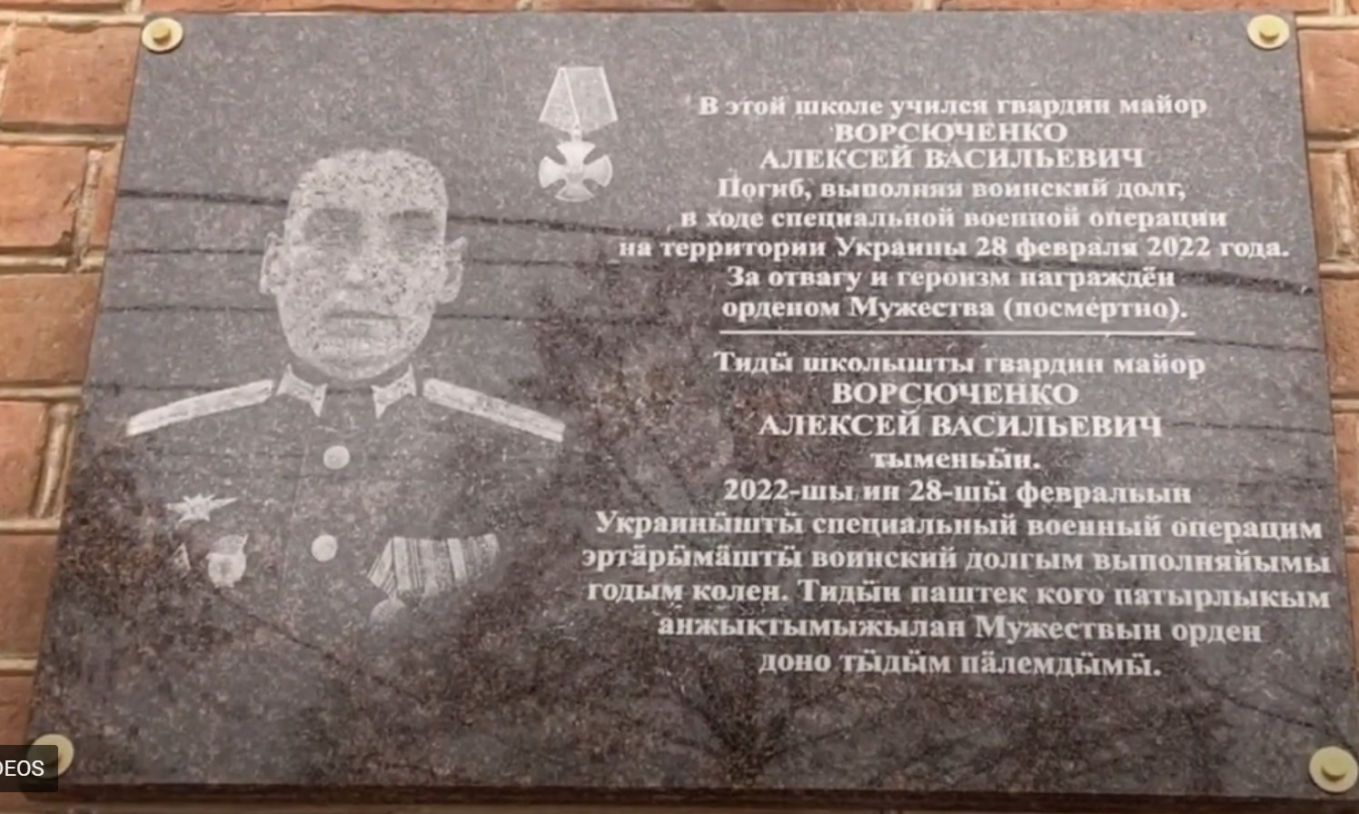 The memorial plaque was installed in Pskov on the facade of house No. 36 on the street. Rokossovsky, in which Guard Major Alexey Vorsyuchenko lived