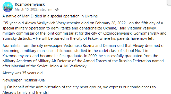Education: Smolensk Military Academy of Air Defense (Graduated 2009)