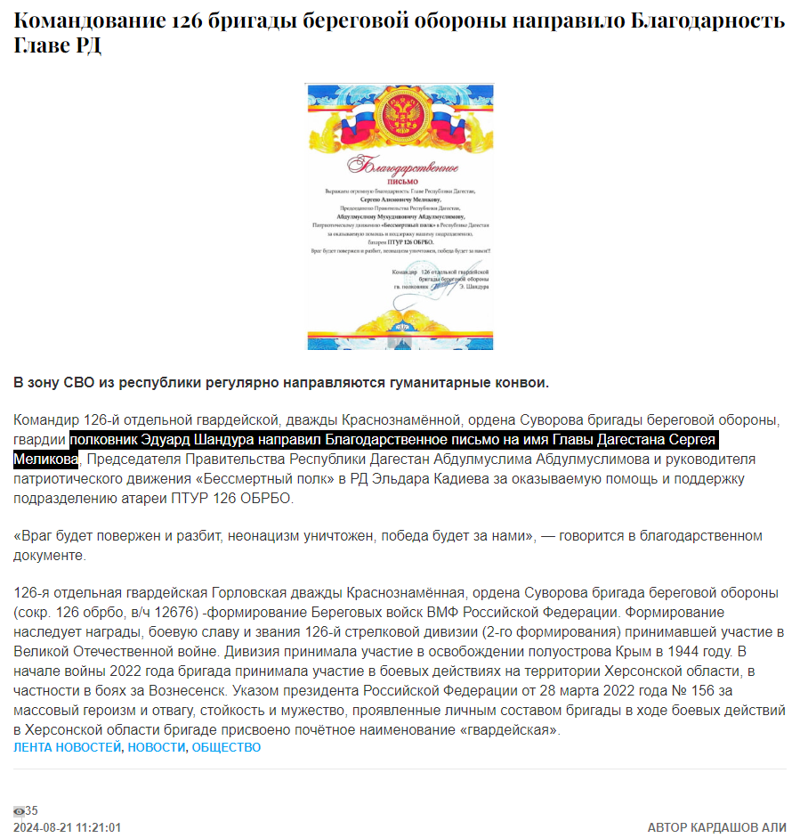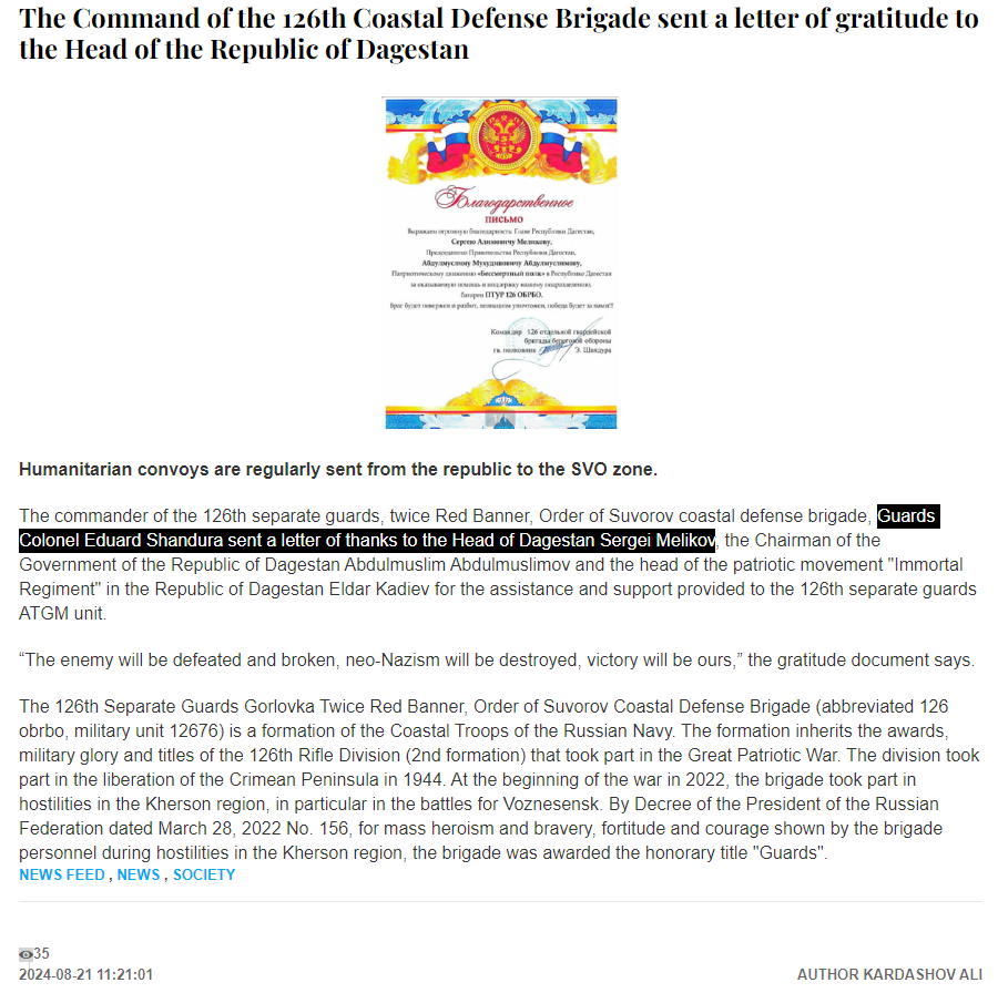 Previously: Chief of Staff of the 71st Motor Rifle Regiment, 42nd Guards Motor Rifle Division, 58th Combined Arms Army, Southern Military District