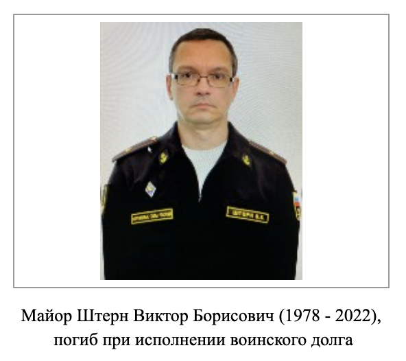 Major Cargo200 By Top September 06, 2022 Viktor Stern Unit: Unknown.Cargo ID: #486Full Name: Viktor Borisovich SternRussian Name: Штерн Виктор БорисовичEducation: St. Petersburg Higher Combined Arms Command SchoolBorn: 1978 (age: 44 years) Share This Cargo Card: Comments