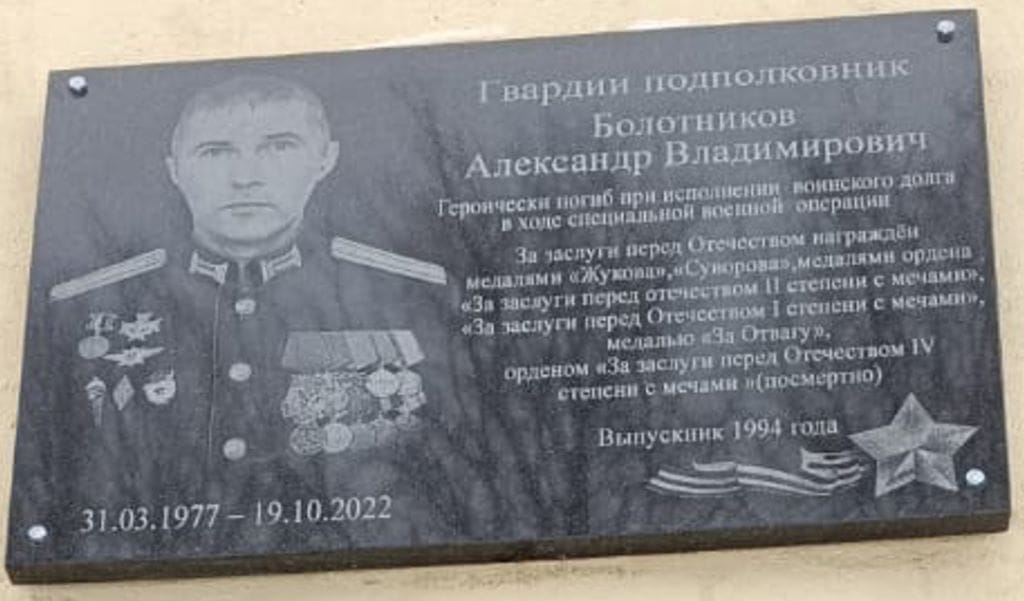 Instantly orienting himself in the current dynamic situation, having determined the most probable direction of the enemy's breakthrough, he moved to the specified line. The enemy, superior in equipment and manpower, reinforced by tank units, undertook to break through the defense line in the area of the village of Sukhanovo, despite the significant superiority of the enemy in equipment and manpower, 3 tanks, 10 infantry fighting vehicles and up to 60 manpower, Lieutenant Colonel Bolotnikov A.V. showing dedication, courage and bravery, seeing the threat of breaking through the defense line, maneuvered with the crew to the flank of the advancing enemy, maneuvering and using the folds of the terrain, taking the enemy by surprise, during a fierce battle that lasted for 6 hours, the crew of Lieutenant Colonel Bolotnikov A.V. managed to repel 3 enemy attacks, forcing them to pull back to the starting lines, destroying 3 tanks, 5 enemy infantry fighting vehicles and up to 40 enemy manpower, so during the breakthrough of the tank at the junction of the defensive positions of the 34th and 80th airborne brigades, leading the tank crew, Lieutenant Colonel Bolotnikov A.V. achieved the destruction of significant forces But having received a mortal wound, he died on the spot, having suffered significant losses in weapons and manpower, the enemy pulled back to the starting lines. Thanks to the competent leadership and resolute courageous actions of the crew of Lieutenant Colonel A.V. Bolotnikov and his heroic perseverance and tenacity to hold the defensive lines of his division, it was possible not only to stop the breakthrough of the defense area, but also to change the intentions of the enemy, who suffered significant losses in equipment and manpower, abandoning offensive actions in this direction.