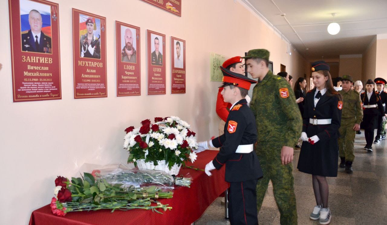 The stand in memory of Vyacheslav Zangiev was opened by his sister; representatives of the family, classmates, and residents of the republic came to pay tribute.