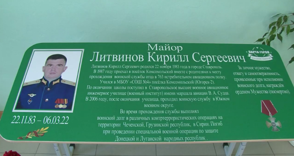 Major Litvinov died on March 6, 2022 during a special military operation. Posthumously awarded the Order of Courage. He was buried in Stavropol.