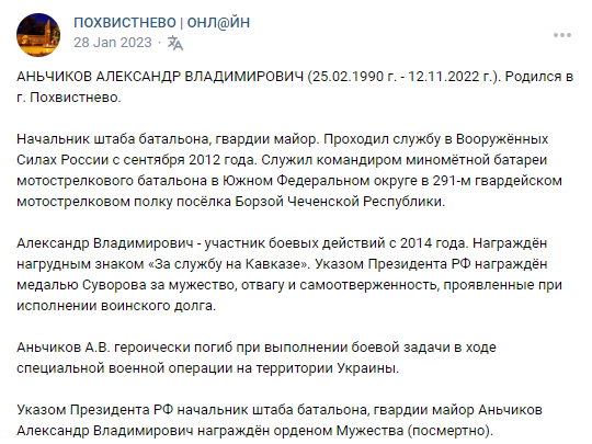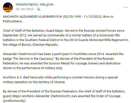 Unit: 291st Guards Motor Rifle Regiment, 42nd Guards Motor Rifle Division, 58th Combined Arms Army, Southern Military District