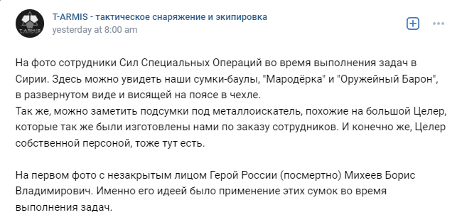 In the first photo with his face uncovered, Hero of Russia (posthumously) Mikheev Boris Vladimirovich. It was his idea to use these bags while performing tasks.