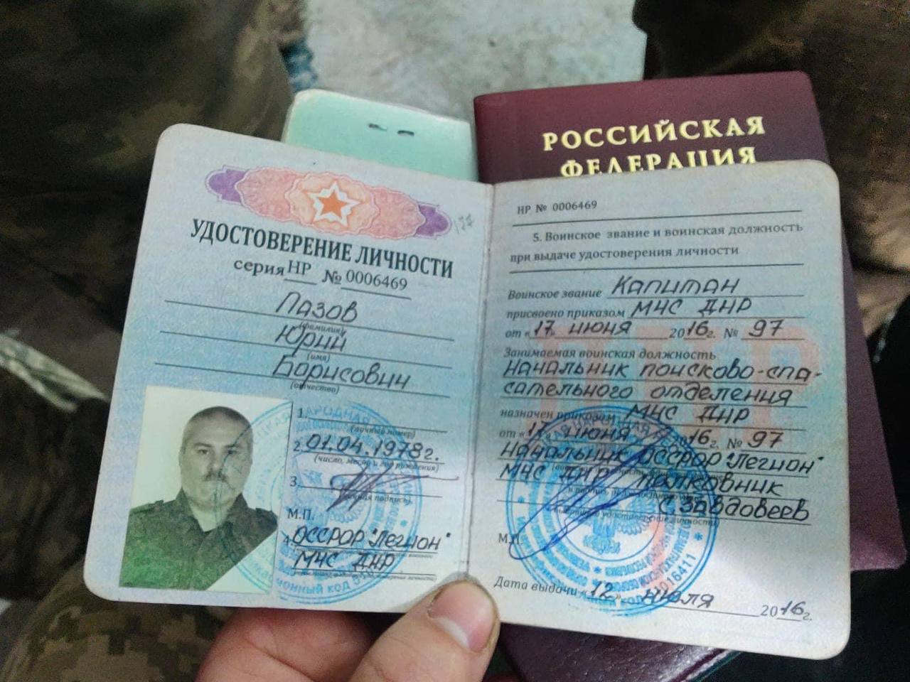 In the period from 24.08.2014 to 28.08.2014 in the area of "Saur-Mogila" Captain Y.B. Pazov took part in combat operations, as part of the "First Slavic Brigade" commander of the "Afghan" unit. In the period from 28.08.2014 to 16.09.2014, in the area of Donetsk airport, Captain Y.B. Pazov took part in combat operations, as part of the "First Slavic Brigade" commander of the "Odessa" unit. Since 20.01.2015, in the area of Avdeevka and Yasinovatoe, Captain Y.B. Pazov took part in combat operations as part of the "Vostok" unit and commander of the "Minsk" unit.