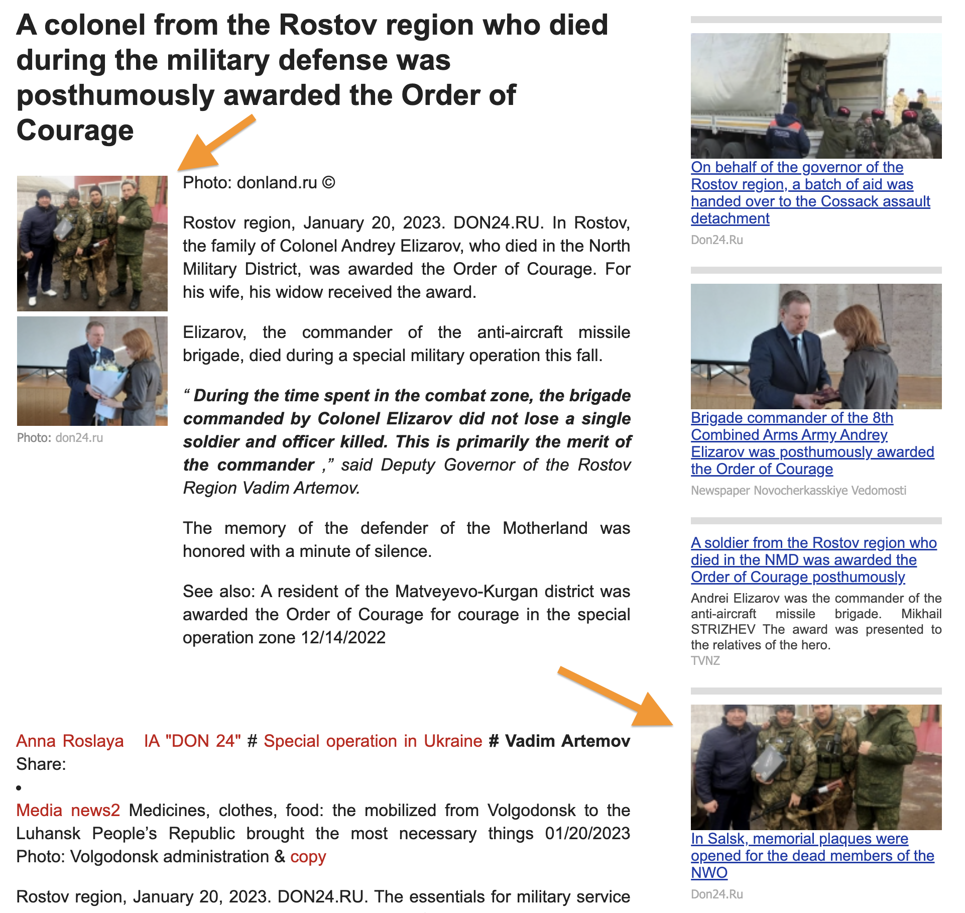 For the courage and self-confidence during the execution of the military duty, the Order of the Courage is mortally awarded by Donchanin, the colonel of Andrey Elizarov. The commander of the 78th anti-aircraft brigade of the 8th Military Army died on October 18, 2022, during the introduction of a special military operation.