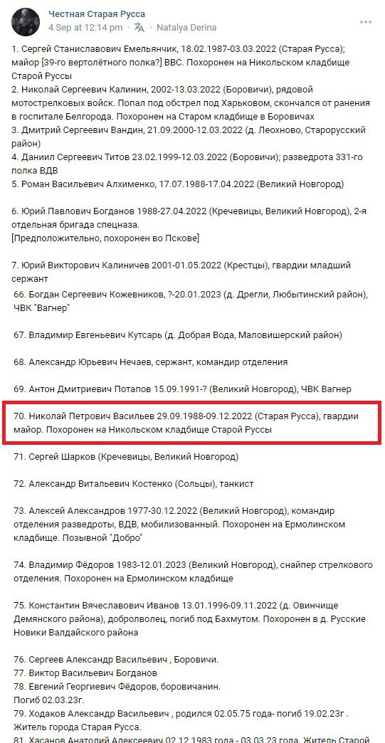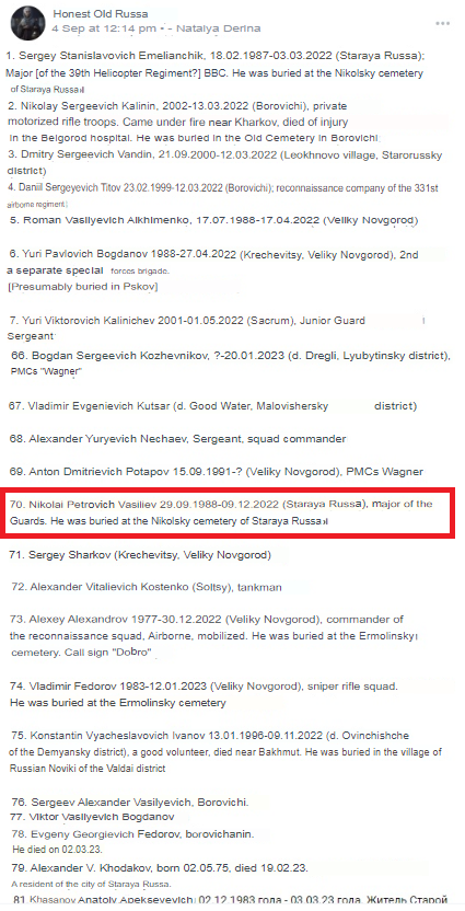 Buried at Nikolskoye Cemetery in Staraya Russa.