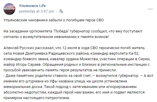 Place of Birth: Ulyanovsk village of Novaya Dmitrievka