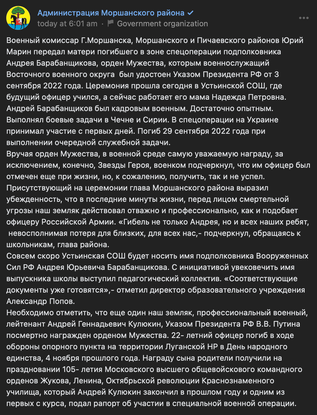The order to award Andrei the order of courage was signed on September 2, 2022, but he died before being able to receive his award. Instead it was presented to his parents on February 8, 2023.