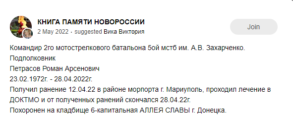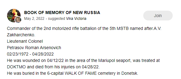 Unit: 2nd Motorized Rifle Battalion, 5th Separate Motorized Rifle Brigade, 1st Army Corps, DPR Militia