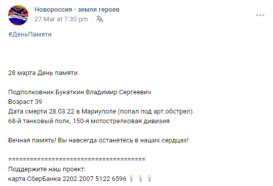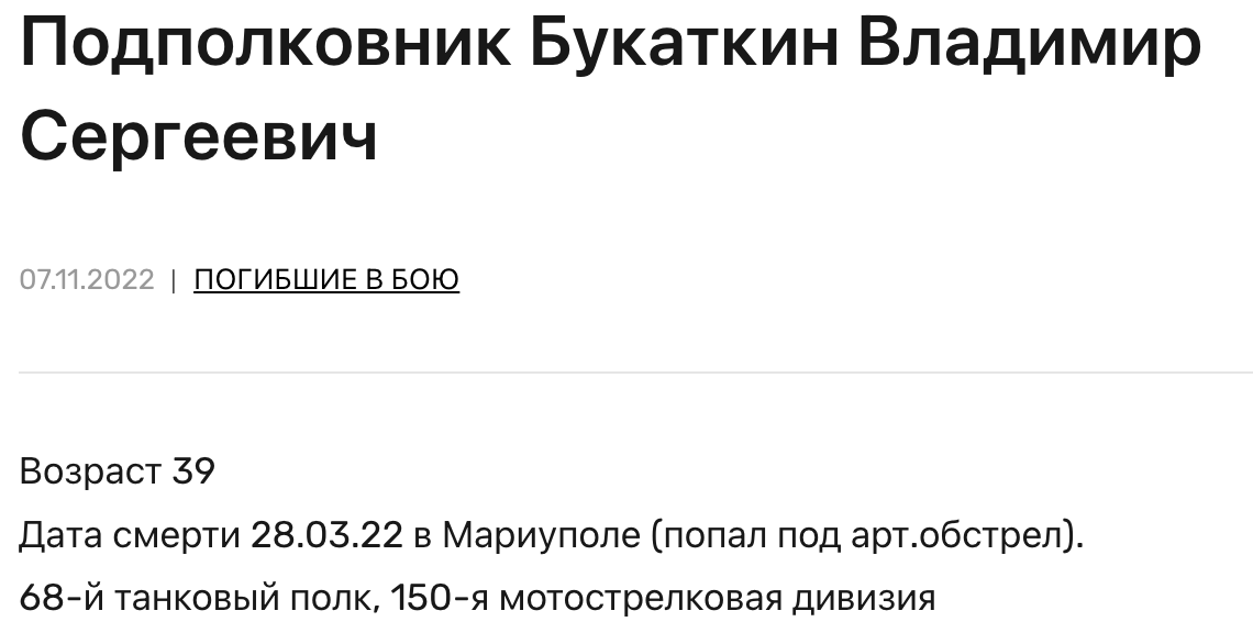Died to artillery in Mariupol