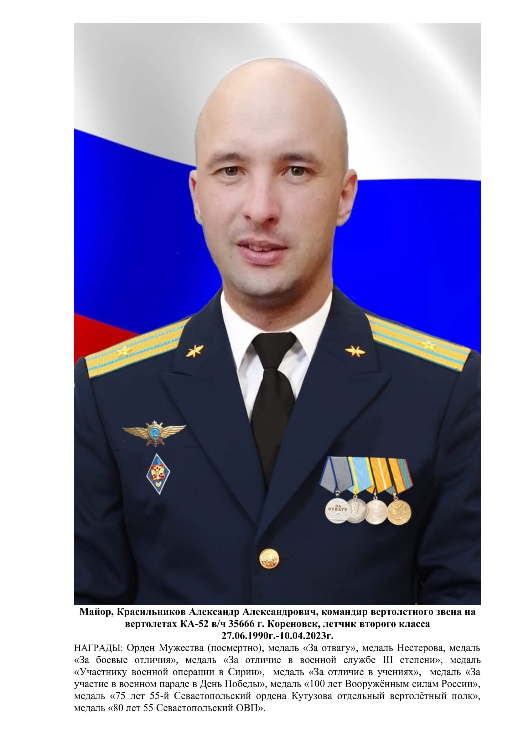 Education: Syzran Higher Military Aviation School (graduated 2012)