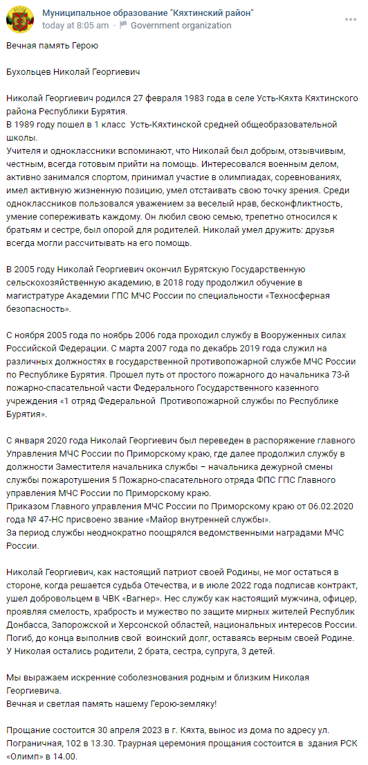 Signed a contract with Wagner PMC in July 2022. He is survived by his parents, 2 brothers, a sister, a wife, and 3 children.