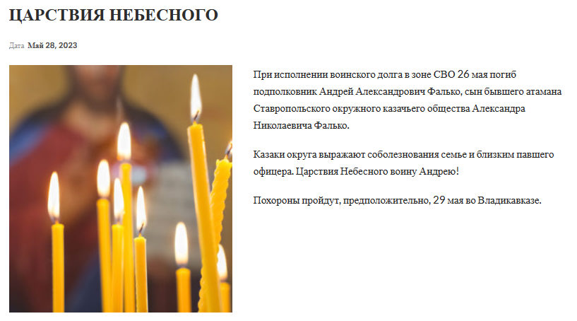 Andrei's father, Alexander Falko, former ataman of the Stavropol Cossack Society. He resigned this post due to systemic problems that continue to accumulate in the ranks of the Stavropol Cossacks over the past years.