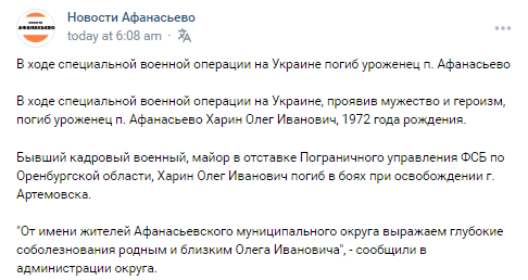 Retired major of the FSB Border Directorate in the Orenburg Region. Died in the fighting for Bakhmut