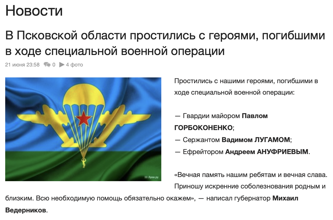On June 4, 2023, a detachment of Russian military personnel under the command of Major Pavel Gorbakonenko was guarding the state border near the village of Novaya Tavolzhanka, Bryansk Region. While patrolling the assigned territory and checking nearby objects, Gorbakonenko uncovered an attempt by the enemy to cross the state border. Having transmitted the location coordinates to the command post of the battalion tactical group, the officer, together with the group entrusted to him, entered into battle with superior enemy forces. For an hour, waging an unequal battle, drawing enemy forces towards himself, Major Pavel Gorbakonenko ensured the possibility of an attack by the reinforcement group on the flank of the enemy unit. The damage inflicted forced the enemy to retreat.