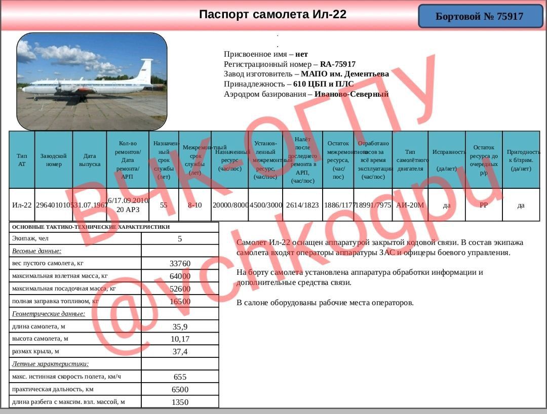 Unit: Il-22 No. 75917, 610th Center for Combat Use and Retraining of Military Transport Aviation Flight Personnel