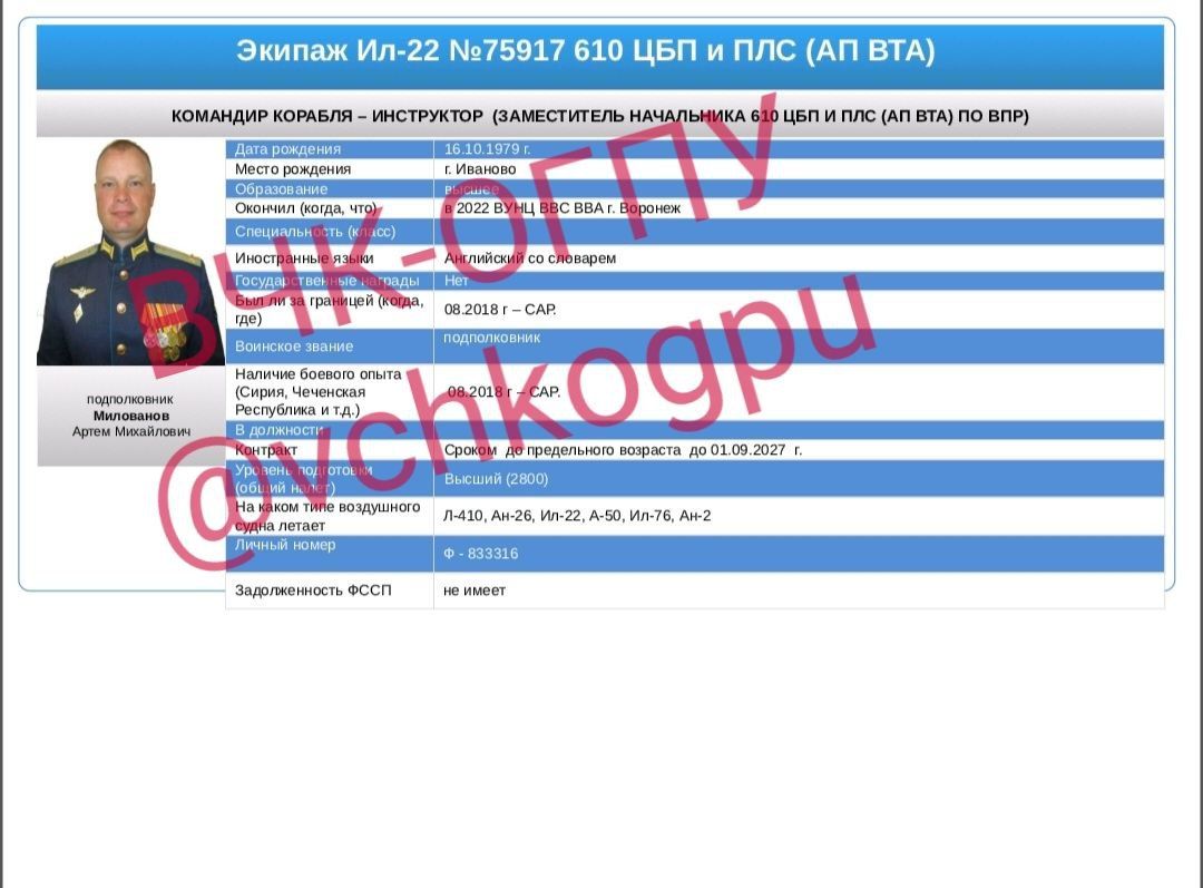 Unit: Il-22 No. 75917, 610th Center for Combat Use and Retraining of Military Transport Aviation Flight Personnel