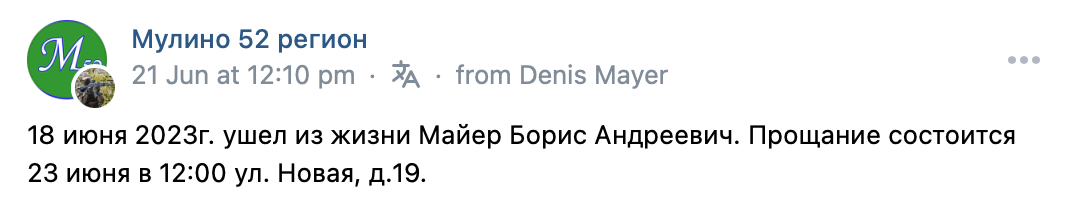 Lived in: Mulino, Volodarsky District, Nizhny Novgorod Oblast, Russia