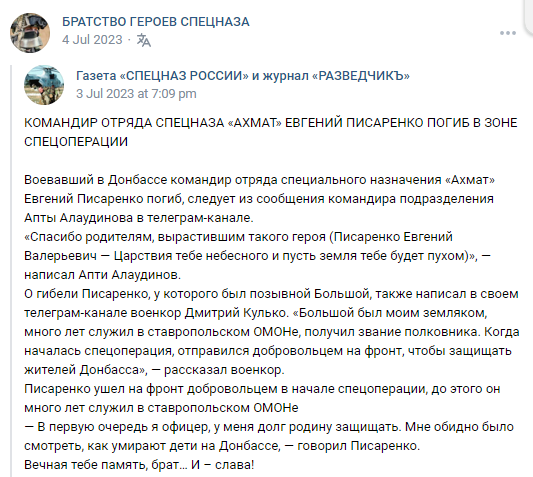 it was publicly announced that, having been awarded the medals “For Courage” and “For Military Valor,” he was nominated for the title of Hero of Russia. Posthumously.