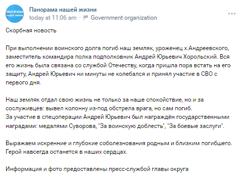 "He gave his life not only for our peace of mind, but also for his colleagues: he led the column out of enemy fire, but he died himself."