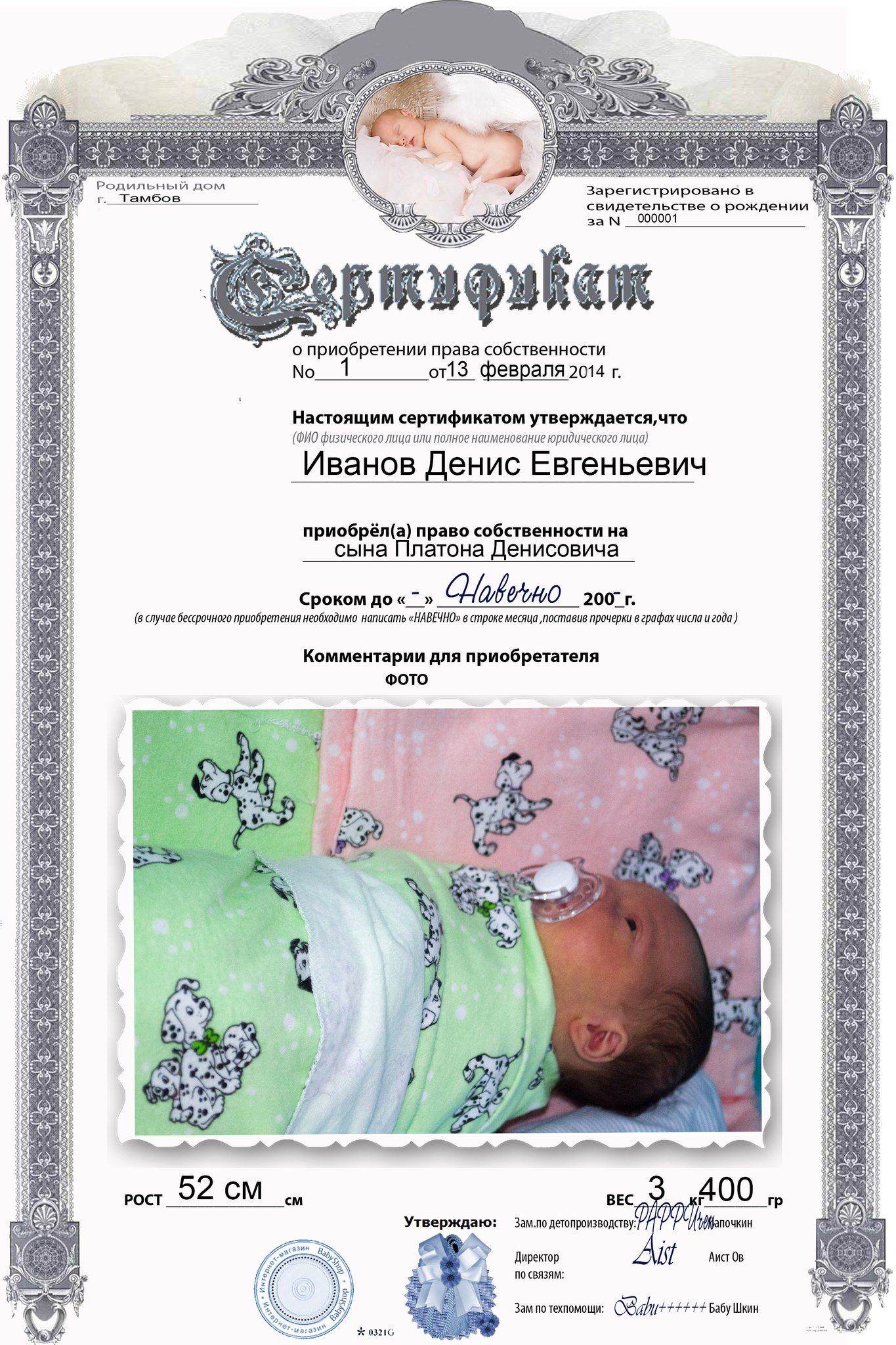 Russian Name: Иванов Платона Денисовича