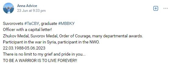 Awards: Medal of Zhukov, Medal of Suvorov, Medal "For Distinction in Military Service" 2nd Class, Medal "For Distinction in Military Service" 3rd Class, Medal "Participant of the Military Operation in Syria", last medal under investigation