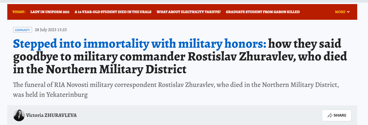 Today 22 July, near Pyatikhatki in the Zaporozhye region , a military commander of the RIA Novosti news agency and the author of the @nezhurka channel Rostislav Zhuravlev died from artillery shelling from the Armed Forces of Ukraine.