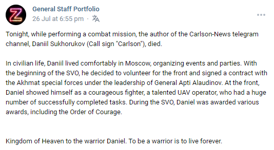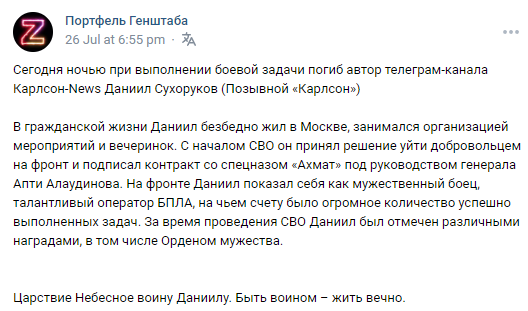 Apty Alaudinov, commander of the AKHMAT special forces, deputy commander of the 2nd Army Corps of the Russian Armed Forces, wrote to on his telegram channel: