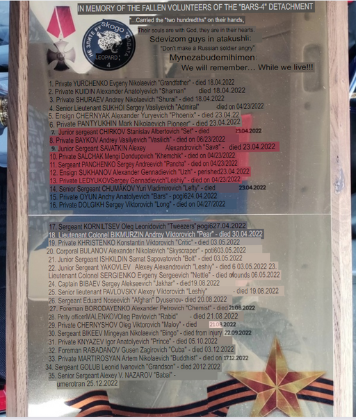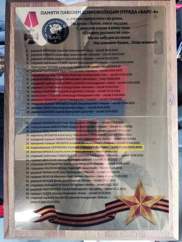 Andrey is the other senior officer listed on this plaque. He was killed the week before Evegeny, on April 30th 2022.