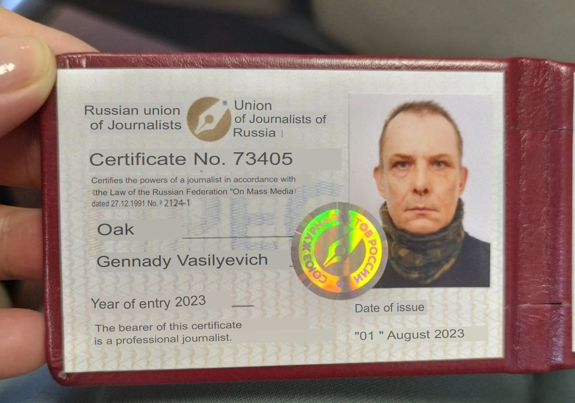 " Journalist, writer, fighter and military commander (formerly units of Motorola, the First Battalion of the First Slavic Brigade of the DPR Army), now the special group of Timur Ibriev (Talib) as part of the Akhmat-1 regiment and the Union of Donbass Volunteers. "