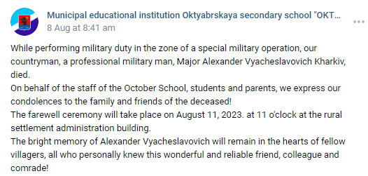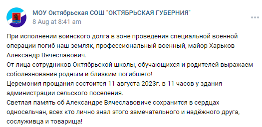 Our fellow countryman, Major of the military intelligence unit Alexander Kharkov, who fell for all of us in a special operation