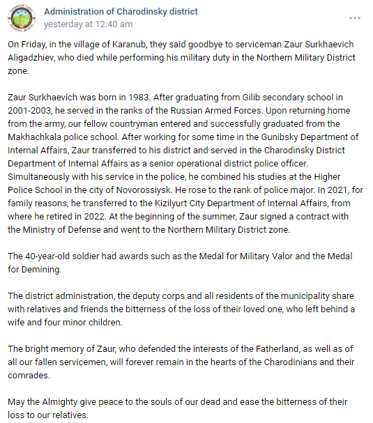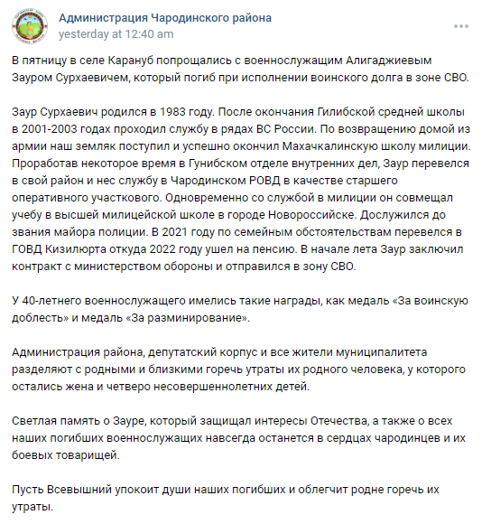 Place of Birth: Charodinsky District,Republic of Dagestan