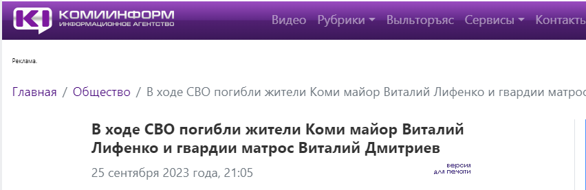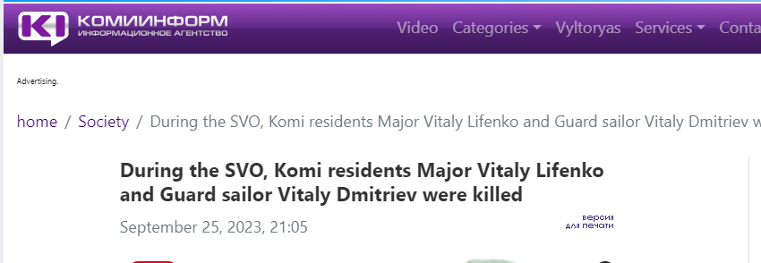 Vitaly Petrovich Lifenko was born in the village of Nizhnyaya Duvanka, Svatovsky district, Voroshilovgrad [now Lugansk[ region. Before the Northern Military District [Ukraine War], he lived in Syktyvkar. A career military man. He served as deputy battalion commander