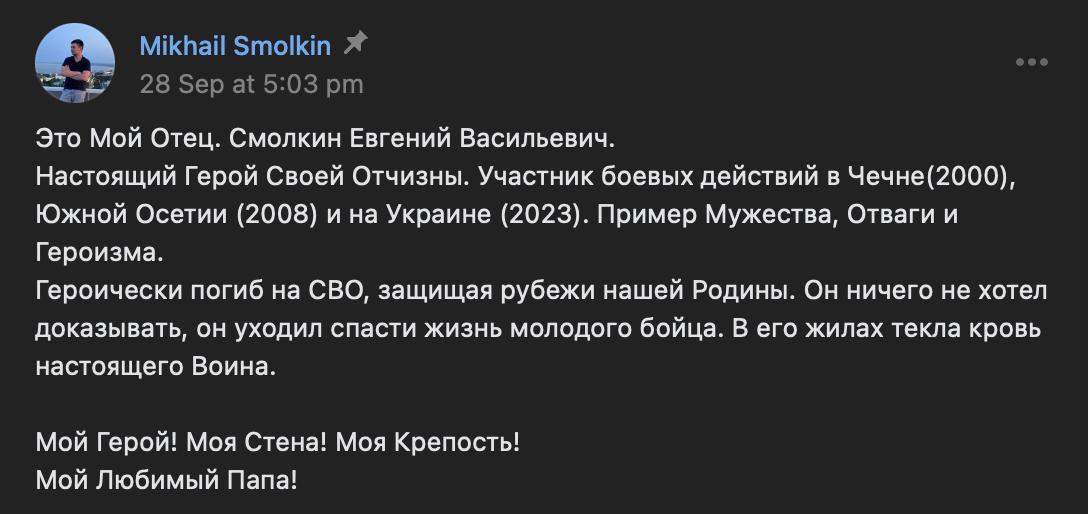 Russian Name: Смолкин Михаил Евгеньевич