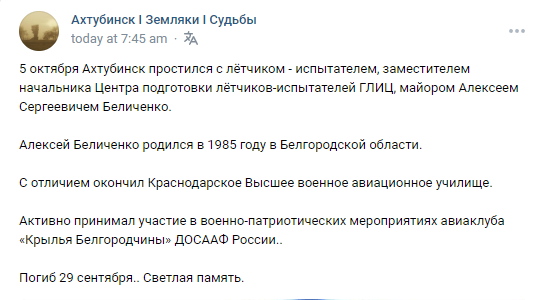During his service, he established himself as a highly qualified pilot-instructor who made a significant contribution to the development of domestic aviation. He was awarded state honors. He died while performing a training flight at the airfield.